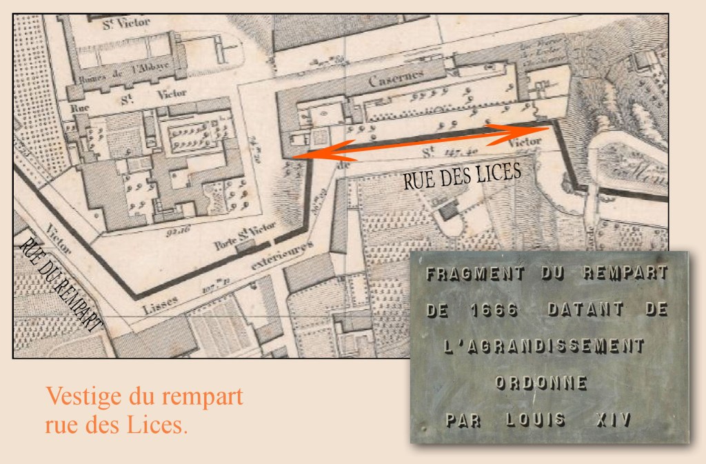 Vestiges. Deux rues du 7e arrondissement portent des noms en rapport avec les anciens remparts de la ville : la rue du Rempart et la rue des Lices.