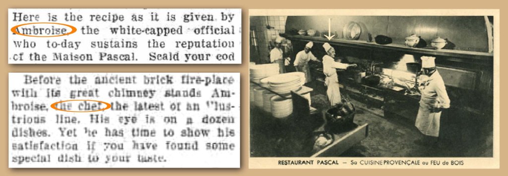 En 1922 « La Provence Hôtelière et Touristique » publie un petit fascicule consacré au « Grand gala gastronomique » organisé par le Syndicat des patrons d’hôtels, restaurants et cafés de Marseille auquel a participé Ambroise BONAVIA (pour le restaurant Pascal) : https://la-butte-bompard.fr/2024/04/11/chef-cuisinier-du-restaurant-pascal/