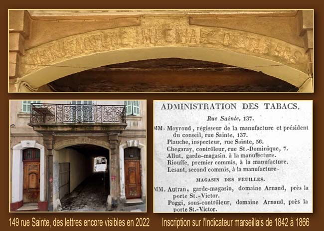 En 1811, Marseille est choisie parmi 16 autres villes de France pour devenir le siège d’une Manufacture des tabacs. L’administration siège au 137 rue Sainte et les magasins à la rue Saint-Maurice.