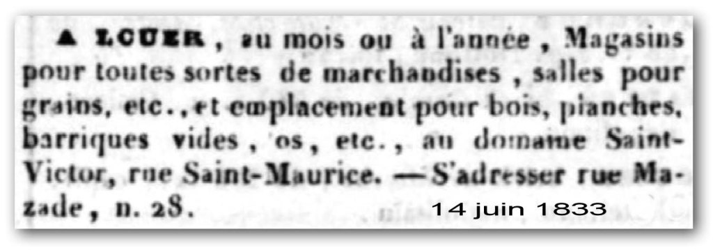 Le descriptif des bâtiments, rue Saint-Maurice, précise la destination de chaque salle;