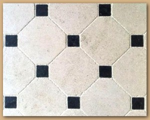 Les carreaux octogonaux placés côte à côte laissaient entre eux un vide que l’on comblait avec un petit carreau carré. Ce carrelage cabochon donnait élégance et cachet aux entrées et pièces principales des maisons bourgeoises .