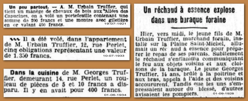 La presse locale évoque le nom des Truffier dans plusieurs rubriques : métiers, loisirs, faits divers).