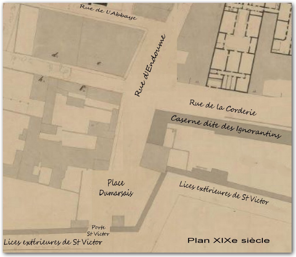 Le terrain vague sis avant les lices extérieures de St-Victor, a pris le nom de nom de « Place du Marsais » par une délibération du 6 Vendémiaire An V (27 septembre 1796).