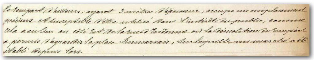 Agrandissement de la place. Un litige entre la ville et Martin, propriétaire, nous apprend que la démolition du rempart a permis « l’agrandissement de la place Dumarsais, sur laquelle un marché a été établi depuis lors «