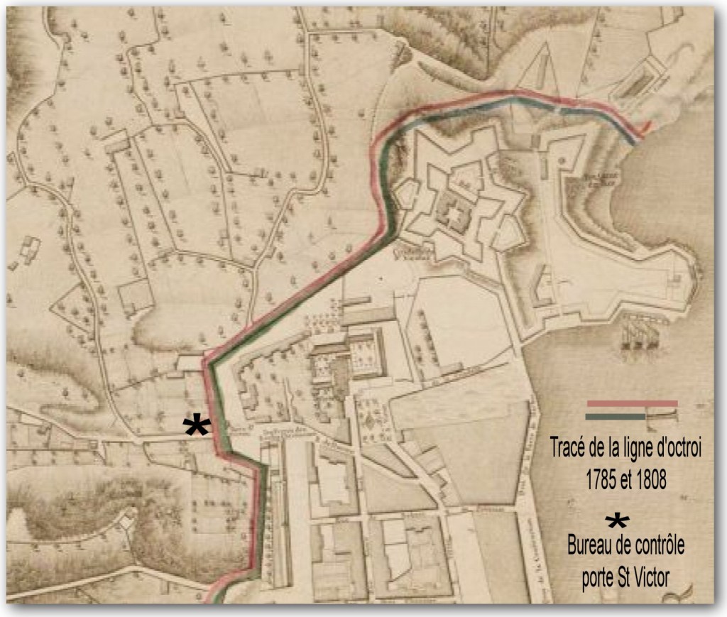 Il ne reste aucun vestige, aucune photo de l’octroi de St Victor ! Seul l’Indicateur marseillais témoigne de la présence des postes de contrôle aux Catalans et à Endoume (St Victor ?)