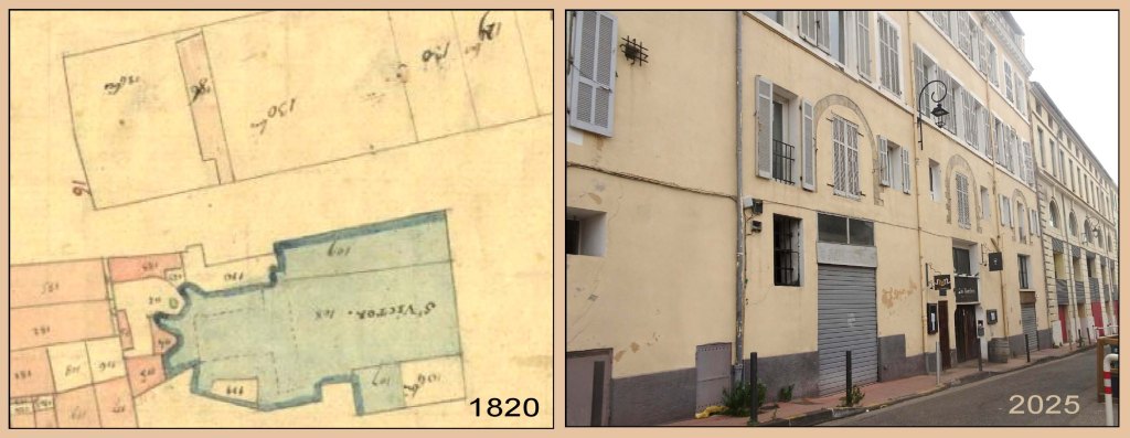 Une recherche dans l’Indicateur Marseillais nous apprend qu’un entrepôt de l’Octroi, domaine « La Félicie », se situait derrière l’abbaye St Victor. Il faisait partie d’un grand bâtiment industriel qui a été construit après l’ouverture de la rue de l’Abbaye ( rue ouverte sur les dépendances de la basilique en 1855).