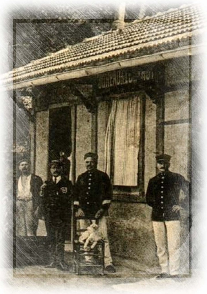 Photo ci-contre : les préposés devant le BUREAU d’OCTROI de MONTOLIVET (carte postale)