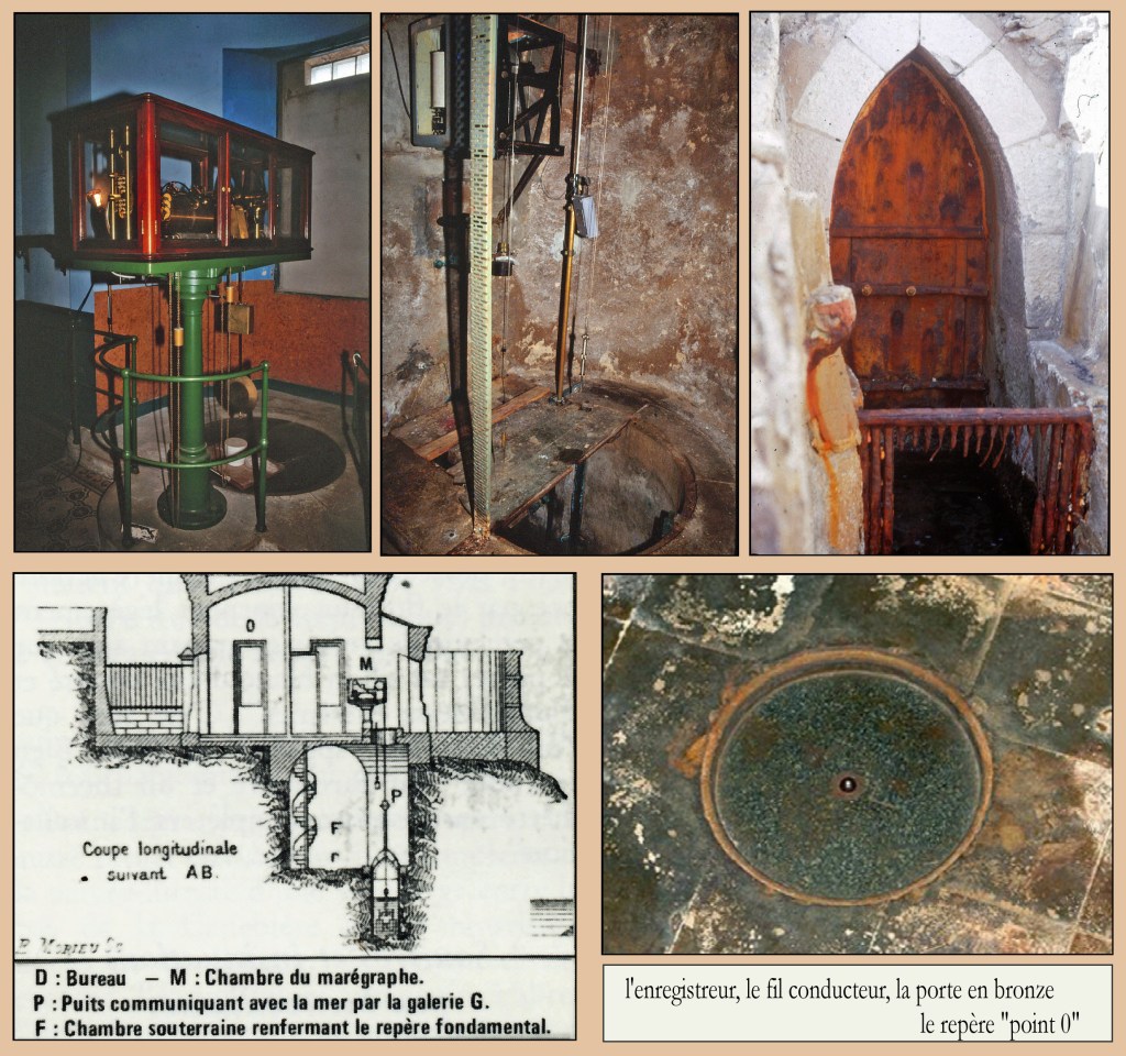 Cet observatoire se compose d’un puits correspondant avec la mer, au fond duquel un flotteur suit les oscillations du niveau de l’eau, lui-même relié par un câble à un appareil enregistreur.